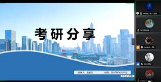 为做好考研学子信息服务工作,进一步提升公司员工考研成功率,6月11日晚,公司在线上召开2020年考研经验分享会,邀请了今年考研成功毕业生代表进行经验分享交流,会议由辅导员肖毅老师主持。