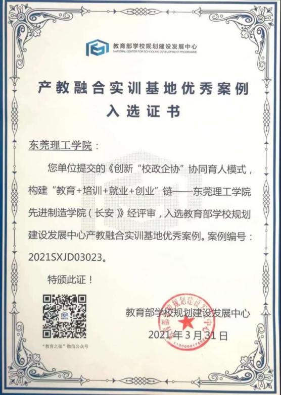 近日,教育部公司规划建设发展中心公布产教融合实训基地优秀案例,先进制造公司(长安)《创新“校政企协”协同育人模式,构建“教育+培训+就业+创业”链--bv伟德国际1946先进制造公司(长安)》案例成功入选。这是先进制造公司(长安)在公司以及长安镇人民政府等各级领导大力支持下,在与各知名企业、协会通力合作下取得的又一重要成果,是国家教育部对先进制造公司(长安)办学方向和改革建设成效的高度认同。