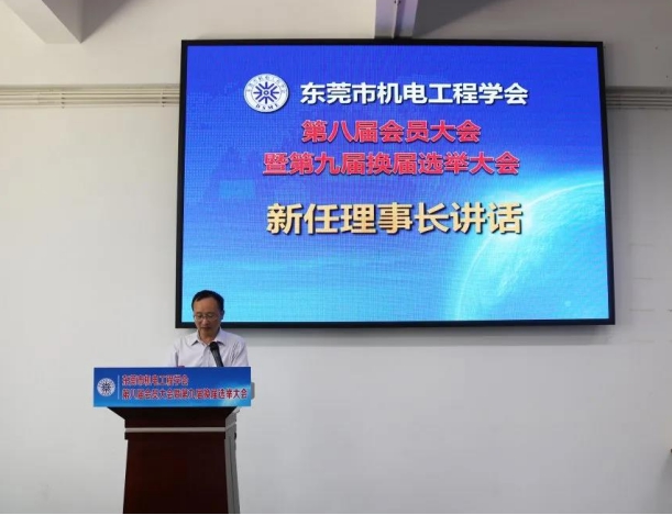 新当选的第九届学会理事长李川教授代表新一届理事会致辞,他首先向一直以来关心、支持、帮助学会工作的各级领导、理事单位致以诚挚的谢意。他表示未来四年,将加大理事会的工作力度,着实帮助企业发展,充分发挥学会和高校的优势科技资源与桥梁纽带作用,组织专业的科技服务团队与会员企业开展联合技术攻关和科技项目申报。承接政府职能转移,做好科技评价、职称评审、学术交流、技能培训等组织协调工作。不断开拓进取,改进和完善学会工作机制,多渠道为广大会员服务,不断壮大学会规模,为促进东莞市机电行业的转型升级及技术进步,为实现我市经济社会的高水平崛起而奋斗。