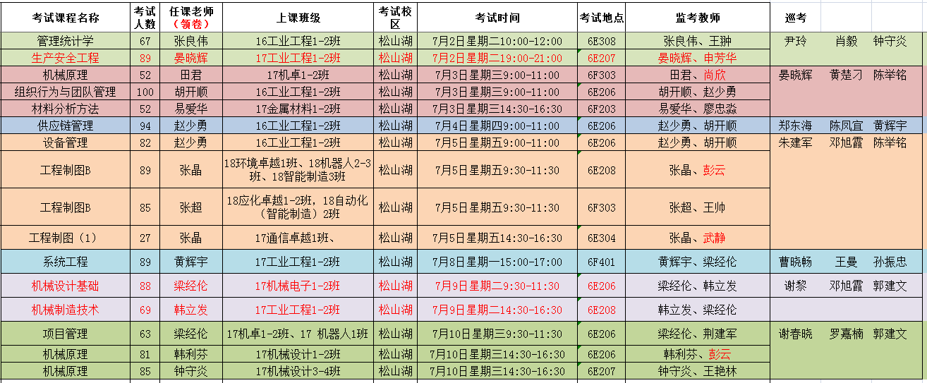 机械工程院安排的考试如无特别说明,补修、跟班重修的员工按跟班班级就坐考试