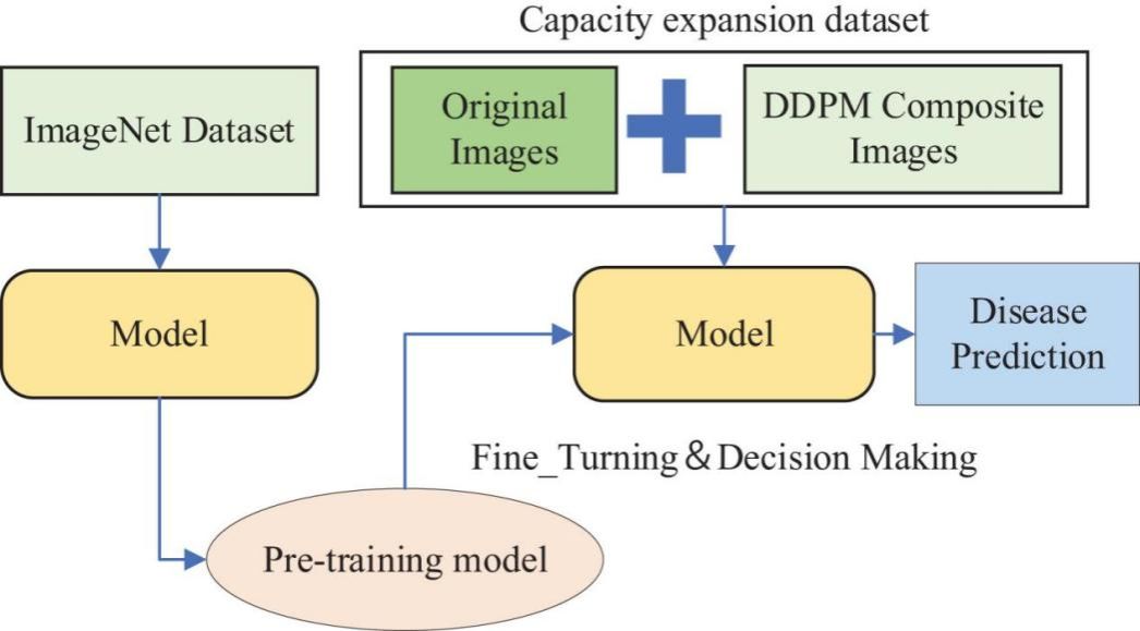 论文通过收集黄龙病样本图像,建立病害图像数据库,并依据当地种植规模、地形特点和耕地分布特点,提出一种基于DDPM和迁移学习的植物病害识别模型:DDPM扩散模型生产用于数据扩充的合成图像,使用Swin Transformer在ImageNet数据集上的预训练模型,再迁移学习至由原始数据集和DDPM合成图像数据集组成的扩容数据集中进行微调训练。该成果同时申请了包括《柑橘病虫害图像智能检测系统V1.0》在内的软件著作权及专利。模型将进一步部署到团队的“智惠农”服务平台上,为用户提供鉴别植株是否患病的智能服务。