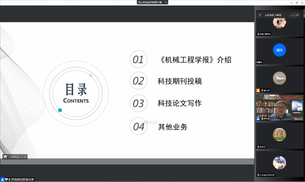 罗晓琪就《机械工程学报》的介绍、科技期刊投稿、科技论文写作以及其他业务等四个方面内容展开了详细的介绍。《机械工程学报》是由中国科学技术协会主管、中国机械工程学会主办的学术性期刊,它刊登了机械工程方面的基础理论、科研设计和制造工艺等方面的学术论文,报道自然科学基金项目论文和国外学者的论文反映本学科的最新发展和最新科研成果。