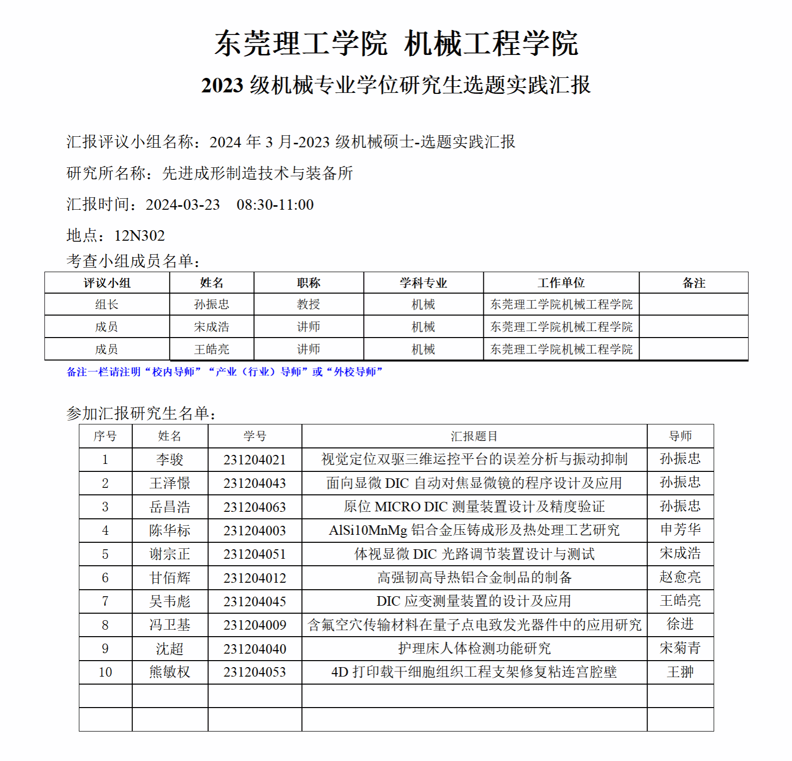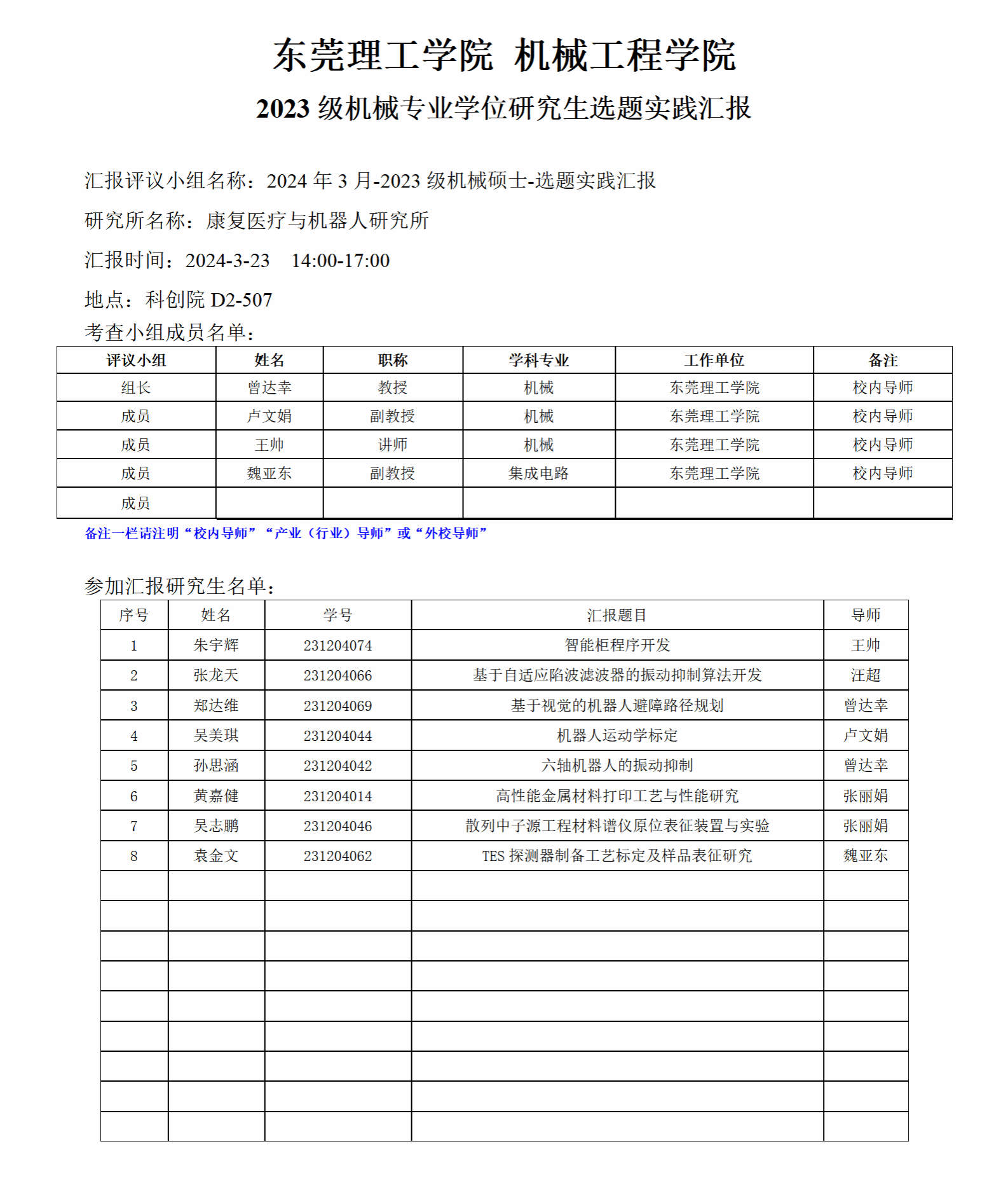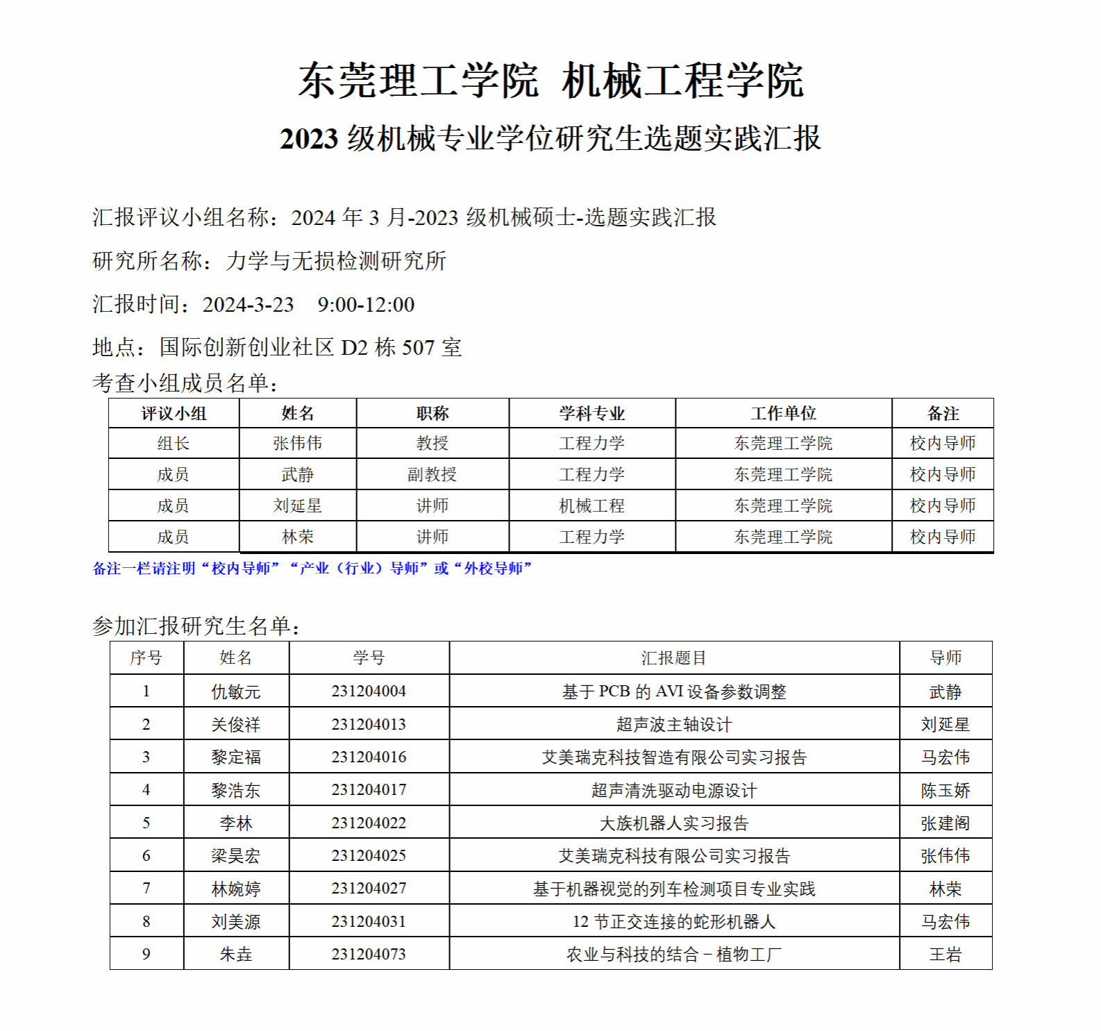 伟德国际victor19462023级机械专业学位硕士研究生选题实践主题汇报公告