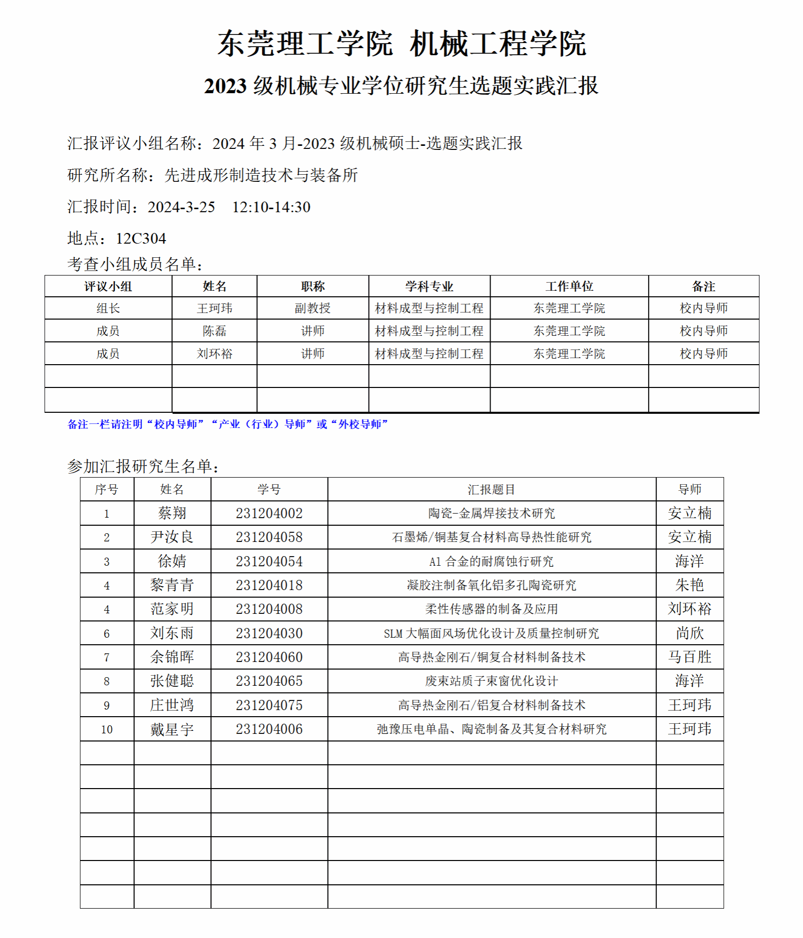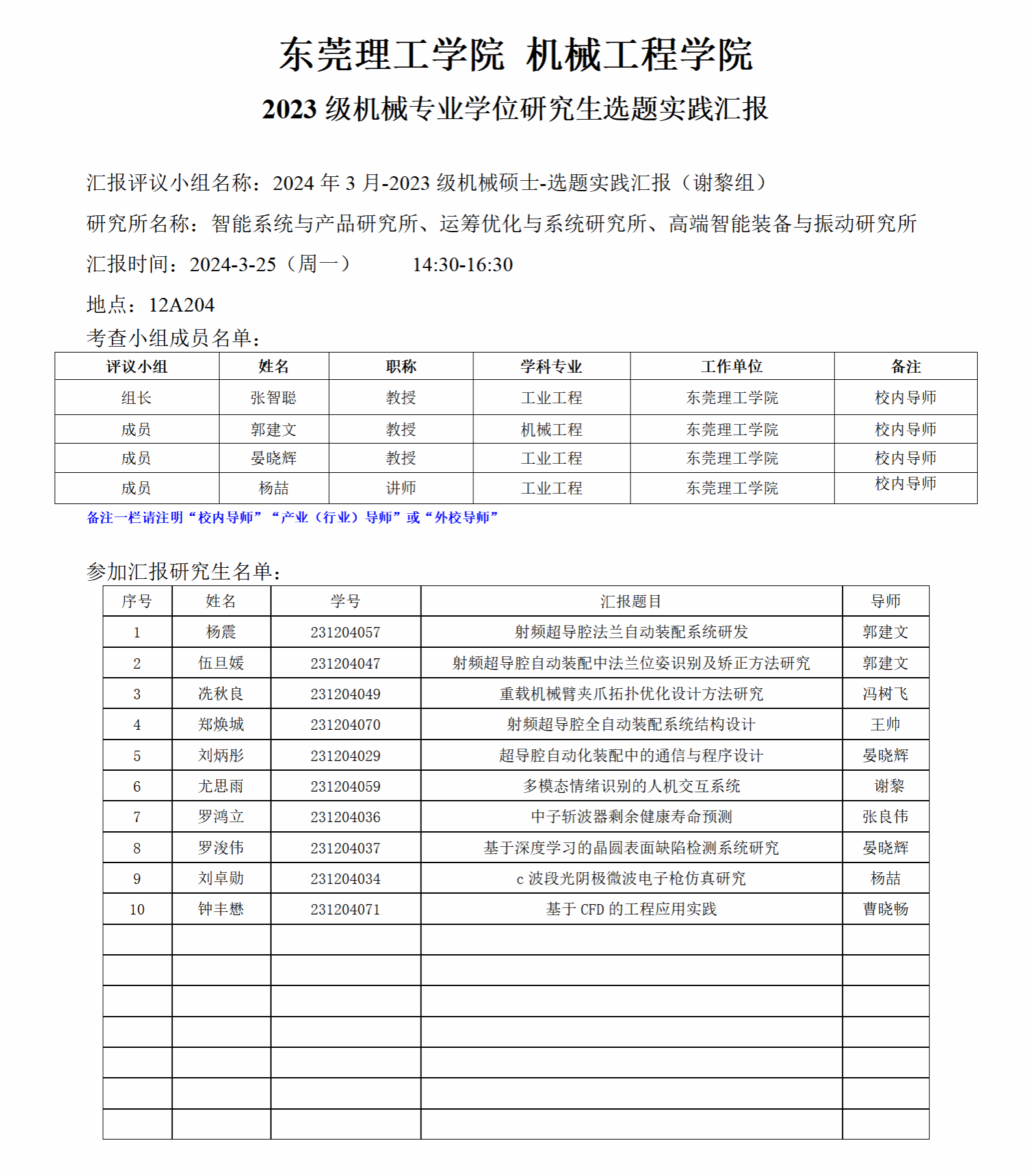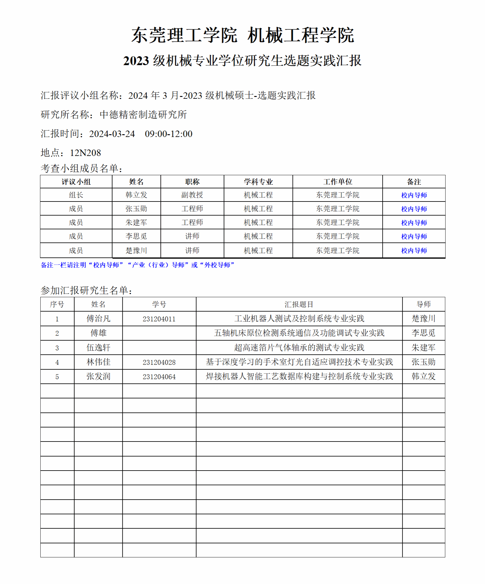 伟德国际victor19462023级机械专业学位硕士研究生选题实践主题汇报公告