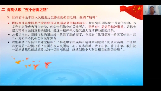 郭建文带领同学们学习了习近平总书记在全国两会上发表的“五个必由之路”的讲话精神。他强调广老员工干部要深入学习领会关于“五个必由之路”的重要论述,在员工日常工作中进一步深刻领会把握、认真贯彻落实。