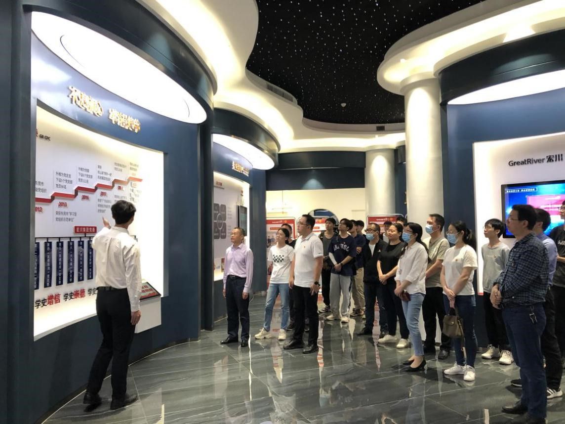 随后,师生党员一行参观了宏川集团展厅,听取了宏川缘起、宏川文化、宏川业务、管理教育、慈善公益等板块的介绍,并且详细了解了宏川集团党委的发展历程、党员队伍建设等党建经验。