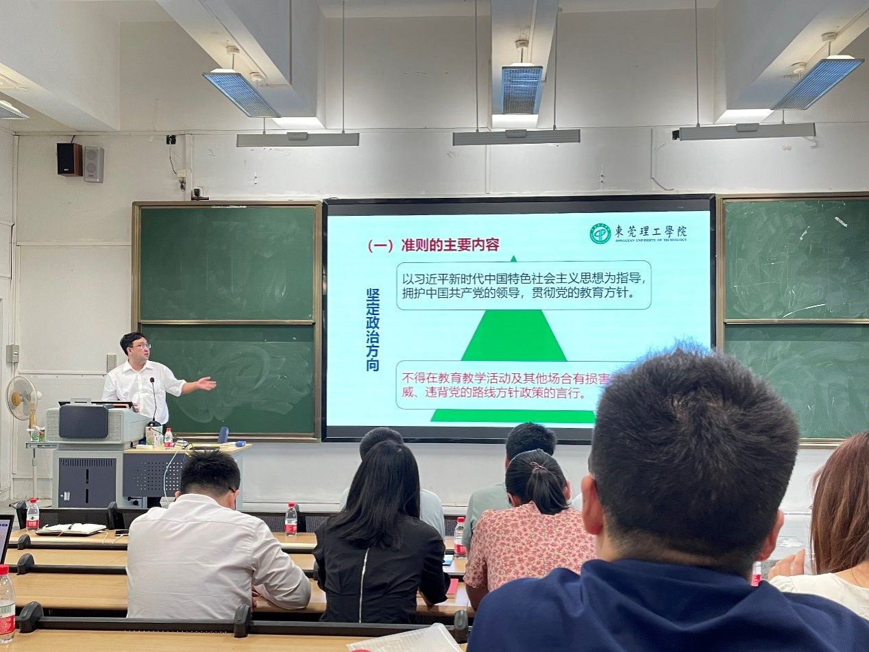 随后,郭建文领学了有关师德教育制度的相关文件。他强调,全体教师要提高政治站位,强化责任担当。要切实提高对师德师风建设的认识,执行高校教师职业行为准则,增强政治意识、底线意识,做“经师”和“人师”的统一者,做“传道、授业、解惑”的统一者。