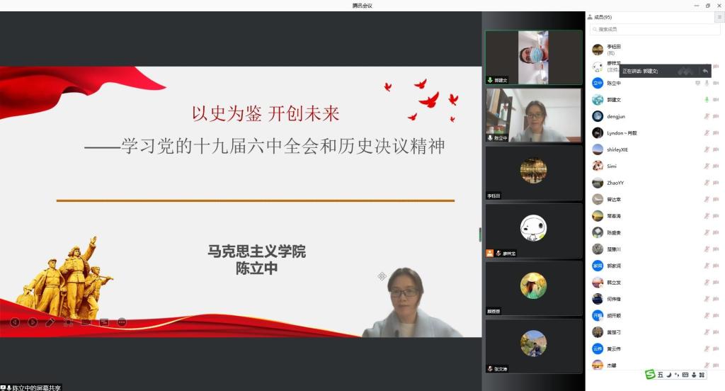 12月16日下午,伟德国际victor1946在线上开展学习贯彻党的十九届六中全会精神专题宣讲会。会议由马克思主义公司陈立中教授主讲,公司党委副书记郭建文主持,全体教职工参加。陈立中从为什么要总结党百年奋斗的重大成就和历史经验;党百年奋斗在实现中华民族伟大复兴进程中的科学定位;党百年奋斗历史意义的内在逻辑;党百年奋斗历史经验的科学概况;如何全面贯彻落实六中全会精神五个方面来进行讲解,带领大家深入学习十九届六中全会精...
