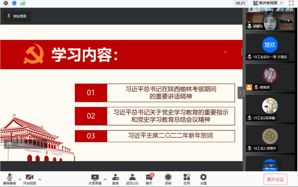 2022年1月21日,伟德国际victor1946应用设计本科生党支部开展一月份主题党日活动。全体党员共同学习了习近平总书记在陕西榆林考察期间的重要讲话精神、习近平总书记关于党史学习教育的重要指示和党史学习教育总结会议精神以及二〇二二年新年贺词等内容。胡娜玲老师对习近平总书记在陕西榆林考察期间的重要讲话精神进行深刻阐释,强调在生态环境上,要走出一条生态和经济协调发展、人与自然和谐共生之路;在党史学习中,要充分运用红色...
