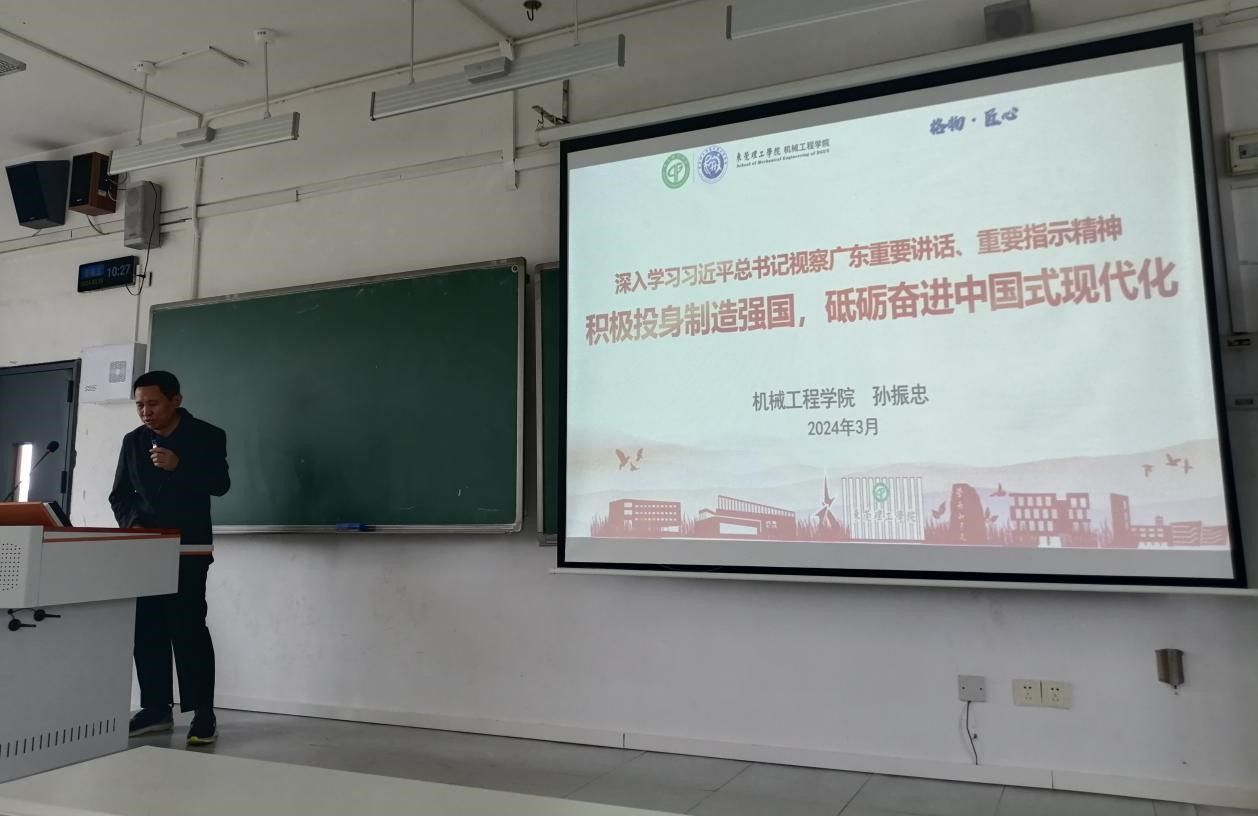 3月15日,伟德国际victor1946经理孙振忠以“深入学习习近平总书记视察广东重要讲话、重要指示精神,积极投身制造强国,砥砺奋进中国式现代化”为主题,为2022级微机电系统工程1班、2班和机械电子工程1班、2班的本科生上2024年春季学期思政第一课。课上,孙振忠围绕习近平总书记在广东视察时的殷殷嘱托,与同学们分享了自己的学习体会和思考,并指出了广东不平衡不充分的发展现状以及对实干型和技术性人才需求的日益增加。孙振忠指出,...