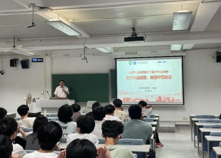 9月25日,伟德国际victor1946经理孙振忠以“认真学习贯彻党的二十届三中全会精神,走好中国道路,做强中国制造”为主题,为2023级机械设计制造及其自动化4班、5班和6班的本科生上2024年秋季学期思政第一课。课上,孙振忠经理强调了学习党的二十届三中全会精神的重要性,并与同学们分享了自己的学习体会和思考,提出要结合国家政策与个人专业发展深刻领悟全会精神。课上,孙振忠阐释了中国式现代化的概念,强调了推进中国式现代化建设...