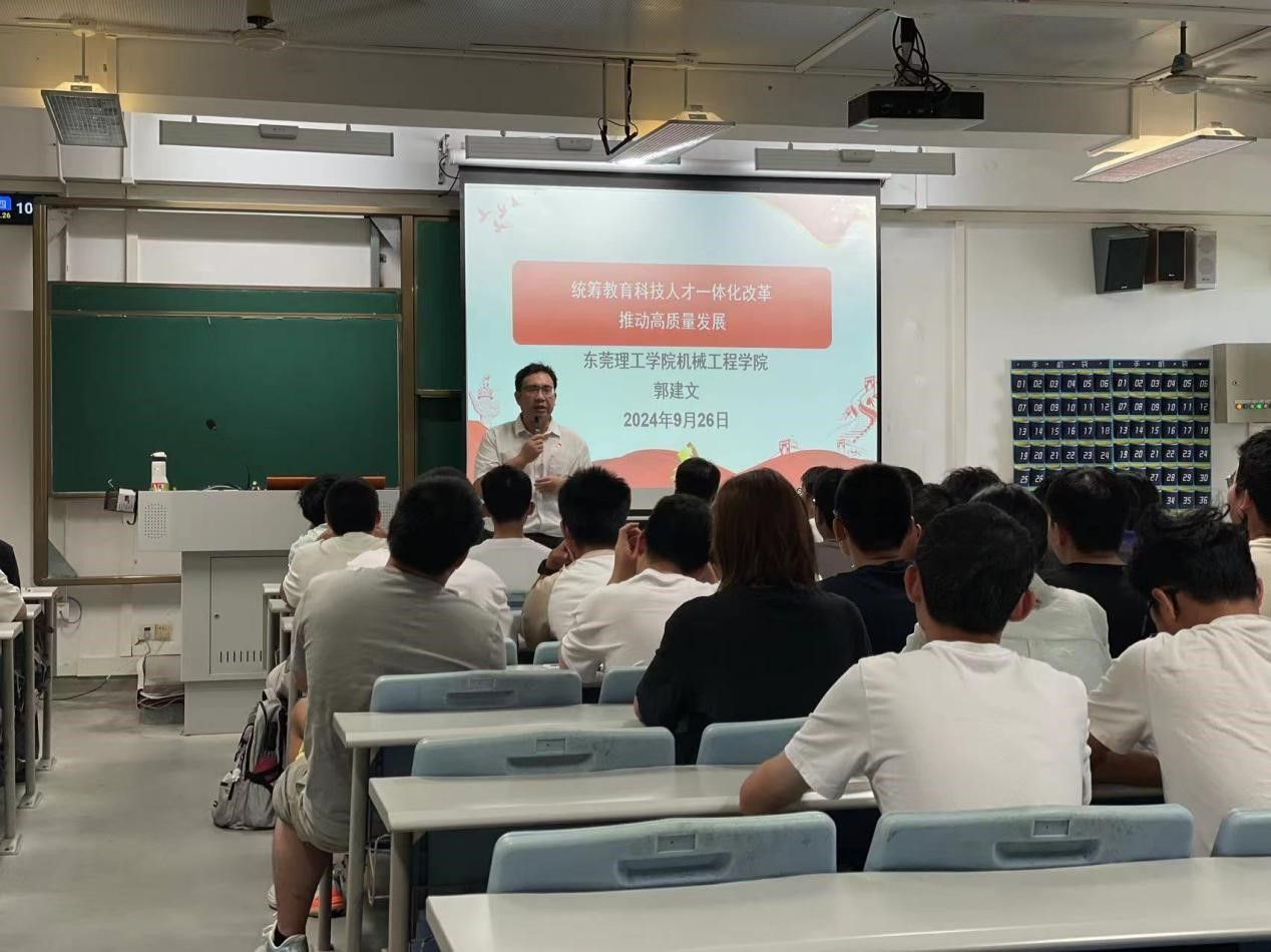 2024年9月24日,机械工程公司党委书记郭建文以“统筹教育科技人才一体化改革推动高质量发展”为题,为2024级材料成型及控制工程1班、2班和工业工程2班的员工上2024年秋季学期“思政第一课”。课上,郭建文结合党的二十届三中全会精神,为员工们讲述了改革开放以来东莞近些年的高质量发展。带领同学们深刻了解东莞城市转型升级的发展史,讲解了东莞从一个四季飘香的农业县,转型升级走向“双万”城市的发展历程,生动、具体、形...