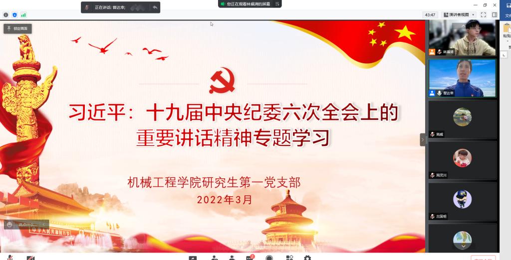 2022年3月24日,伟德国际victor1946研究生第一党支部于线上开展“深化课堂教学改革,提升课程思政质量”主题党日活动,活动由支部书记曾达幸副经理主持,经理助理曹晓畅和全体研究生党员参与活动。会上,全体党员共同学习了习近平总书记在十九届中央纪委六次全会上的重要讲话精神、习近平总书记重要文章《深入实施新时代人才强国战略、加快建设世界重要人才中心和创新高地》以及2022年习近平总书记新年贺词。曾达幸鼓励同学们,无论处...